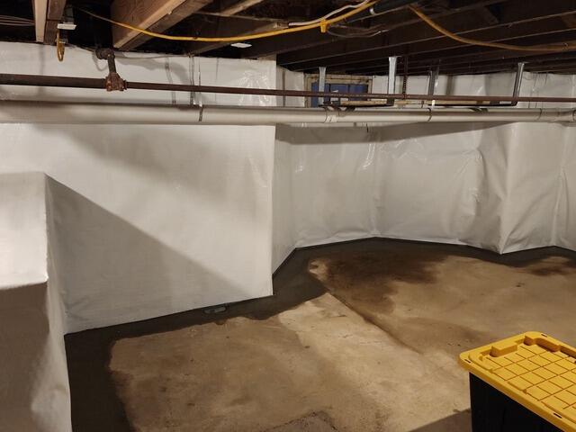 A homeowner from Sussex, NJ dealing with ongoing basement moisture decided it was time for a permanent waterproofing solution. To keep water out and protect the space, a complete system was installed to manage water from every angle. CleanSpace was used along the basement walls to create a clean, moisture-resistant barrier, while the WaterGuard drainage system captured water at the wall–floor joint before it could spread. A TripleSafe sump pump system was added for reliable pumping power and backup protection during heavy rains or power outages. On the exterior of the house, to prevent frozen or clogged discharge lines, IceGuard was installed, and LawnScape was used to safely direct water away from the foundation outside. With the full system in place, the basement stayed dry, protected, and ready for worry-free use year-round.
