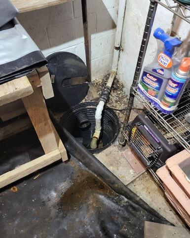 At this property in Parkville, MD, the laundry room area of the basement collects a lot of water seepage from heavy rain and also in the winter after snow melts. After evaluating the water problem, we installed the below-grade WaterGuard drainage system and SuperSump sump pump. This system provides a permanent solution to help prevent basement flooding and also collects water from wall leaks that will be redirected into the below-grade drain.