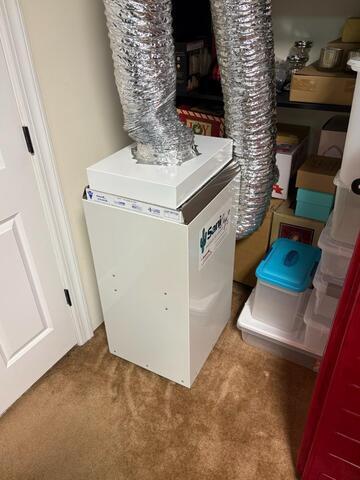 The SaniDry XP Upright Dehumidifier is a reliable dehumidifer system capable of removing up to 109 liters of water per day. It can be ducted and a condensate pump can be added to move waste water away from the area. During annual maintenance on this Homdel homeowner's system, Service Technician Anton carefully inspected the heat exchange core, changed filters, checked the refrigeration system, sprayed the coils, cleaned the drip tray, cleaned out the condensate drain line and performed an overall test. With systems operating at peak performance, Anton left the homeowner with peace of mind.