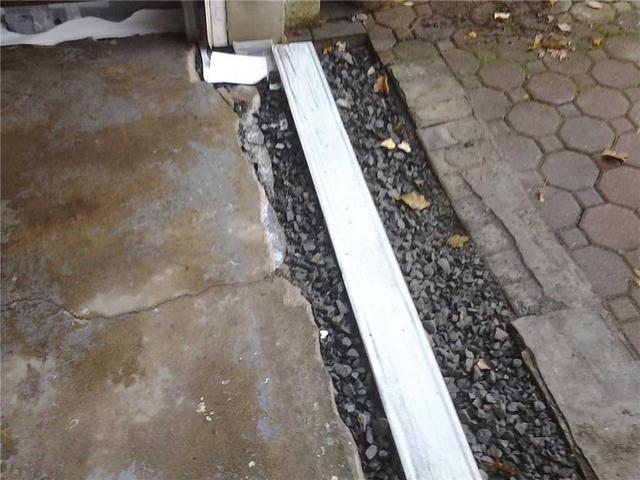 A TrenchDrain is installed across the driveway to catch and remove any water seeping through.