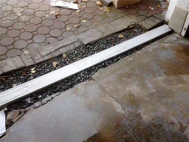 The existing drain let water pool when the driveway met the basement.