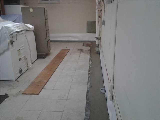 This Leonia basement flooded every time it rained. Tiles were lifting and the family worried the dark marks could be mold.