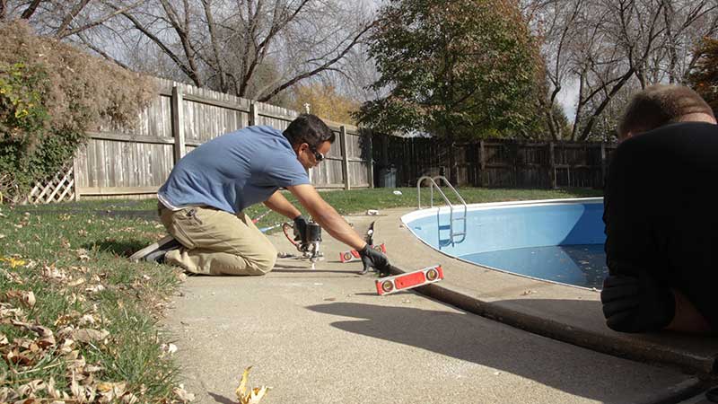 Has the concrete surrounding your pool dipped or settled, creating a hazardous uneven surface? Is there a protruding concrete edge where one section of the slab has settled below another?