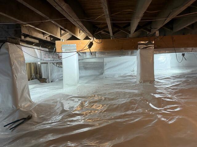 No one wants a damp crawl space that consists of dirt and moisture. This homeowner in West Orange, New Jersey was looking to seal off their dirty crawl space to prevent further water damage. They Contacted Quality 1st Basement Systems and our System Design Specialist, JC Gibriano, provided an inspection and suggested they install a vapor barrier system. Our foreman installed the CleanSpace Vapor Barrier System which is thick and durable like a pool liner. This system will seal the crawl space from the earth's elements, and keep the space dry.