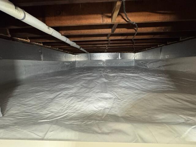 First, SilverGlo was installed on the crawl space walls to boast a radiant barrier that reflects heat back into the crawl space. CleanSpace Vapor Barrier was installed on the crawl space walls and floors to seal off the crawl space and make sure no water vapor or humidity passes through. This liner is durable and is ideal for homeowners who want to use their crawl space for storage. Any air in your crawl space travels up throughout the eniter home and so its important to make sure your crawl space is clean and dry to increase the wuality of air you and your family breathe in everyday!