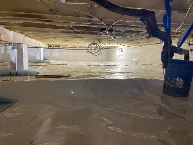 We installed our specially patented Drainage Matting to direct water towards the drainage system, SilverGlo Insulation Panels for enhanced energy efficiency, our CleanSpace Vapor Barrier to prevent moisture infiltration, and our SmartSump Crawl Space Sump Pump to remove excess water.