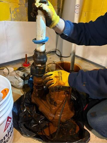 Quality 1st Service Technician Randy disassembles this Hazlet homeowner's TripleSafe Sump Pump system for annual maintenance. The cast-iron Zoeller pumps are cleaned to ensure the system is working properly to provide an effective and efficient wet basement solution. After other parts are cleaned and tested, the system is reassembled and ready to continue guarding against water intrusion!