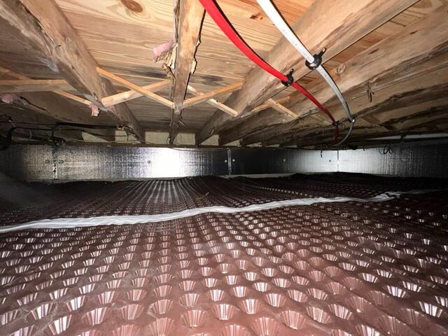 After a comprehensive inspection, our System Design Specialist identified the root causes of the moisture intrusion. To address the problem effectively, our team designed a custom waterproofing plan tailored to the unique needs of the crawl space. This plan included the installation of our patented Drainage Matting to channel water away from the foundation, SilverGlo Insulation Panels to create a thermal barrier, and our mold-resistant CleanSpace Vapor Barrier System to completely seal the crawl space from ground moisture.