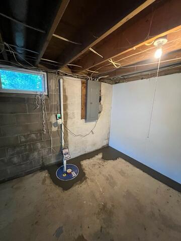 To address the moisture coming through the walls, we installed CleanSpace Wall Panels, which serve as a durable vapor barrier and direct any wall seepage into the WaterGuard System. These panels also help brighten the basement with a clean, finished appearance. For water removal, we installed our TripleSafe Sump Pump System, which provides three layers of protection: a primary pump, a secondary pump for higher water volumes, and a battery backup to ensure operation during power outages.
