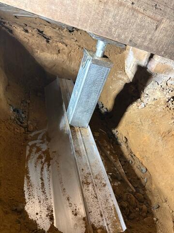 Within a single day, the Q1 team reinforced the crawl space with several galvanized steel SmartJack posts, each seated on a compacted base designed to distribute weight evenly, even in weak soils. The adjustable design allowed the crew to gently lift her floors back toward their original position, restoring stability and eliminating bounce.